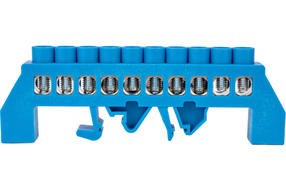 Нулевая N шина в комбинированном синем изоляторе на DIN-рейку REXANT 8x12 мм 10 групп 11-2316 предназначена для электрического и механического соединения нулевых, защитных и фазных проводников. Выполнена из латунной шины, установленной в изолятор, изготовленный из самозатухающего пластика. 298,00 ₽ / шт