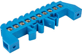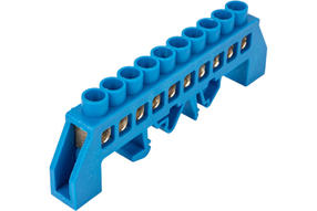 Нулевая N шина в комбинированном синем изоляторе на DIN-рейку REXANT 8x12 мм 10 групп 11-2316 предназначена для электрического и механического соединения нулевых, защитных и фазных проводников. Выполнена из латунной шины, установленной в изолятор, изготовленный из самозатухающего пластика. 190,00 ₽ / шт