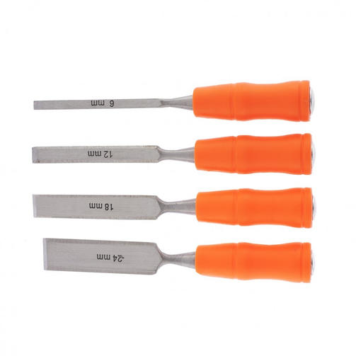 Набор стамесок 4 шт, 6-12-18-24 мм, плоские, пластиковые ударные рукоятки Sparta 243975