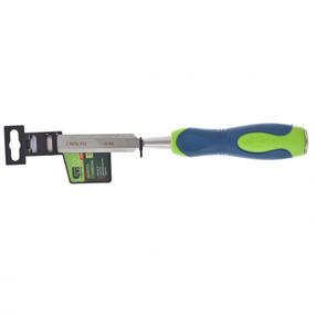 Долото-стамеска Сибртех 24483 с двухкомпонентной рукояткой — ручной инструмент с шириной режущей части 18 мм для столярных и плотницких работ с массивом натурального дерева. Под ударом киянки или небольшого молотка долото-стамеска легко врезается в древесину любых пород, что позволяет получать аккуратные прямоугольные пазы, снимать фаски, зачищать гнезда и т. д. Преимущества Прочность — полотно стамески изготовлено из высококачественной конструкционной углеродистой стали 55. Долговечность — полотно на 2/3 длины рабочей части закалено до твердости 50-55 HRC, поэтому инструмент долго сохраняет остроту. Высокая эффективность — режущая часть остро заточена на заводе под углом 20-35 градусов, что обеспечивает качественную работу и аккуратный результат. Защита от разрушения — металлический затыльник предотвращает деформацию рукоятки под воздействием киянки или молотка. Эргономичность — обрезиненная двухкомпонентная рукоятка не выскальзывает из руки и обеспечивает комфортную работу. 470,00 ₽ / шт