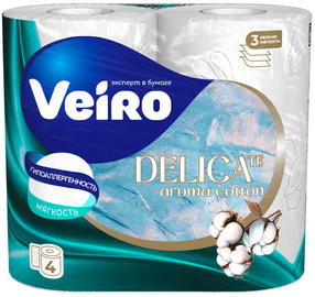 Бумага Туалетная Delicate Aroma Cotton Белая 3Слоя 4шт Veiro