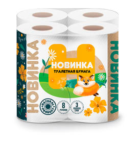 Туалетная бумага «Новинка» целлюлозное сырье, длина рулона 15 ±1 м, 3 слоя, со втулкой, диаметр втулки 46,5 мм, с перфорацией, размер отрывного листа: 120х92 ± 5% мм, 8 рулонов в пачке с ручкой, 6 пачек в упаковке, упаковка:полиэтиленовый мешок. 235,91 ₽ / шт