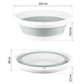 Универсальный складной таз — незаменимый предмет в быту. Станет отличными помощниками в Вашем доме. Благодаря современным технологиям громоздкие тазы остались в прошлом. Удобные и практичные, быстро и легко складываются, что позволяет обеспечить минимум места для хранения. Высококачественный материал не пахнет и не впитывает запахи. Не деформируется. Прост в уходе — можно мыть моющими средствами. Материал таза термостойкий — может использоваться для стирки и замачивания белья, для уборки по дому, для дачи, для сборки овощей, для пикника. Предусмотрено отверстие для подвеса. Характеристики: Материал: полипропилен. Размер в сложенном виде: 39.5×40×5.5 см. Размер в разложенном виде: 39.5×40×14.5 см. Диаметр дна: 25 см. Объем: 10 л. Цвет: серый, белый. 680,00 ₽ / шт
