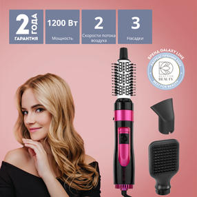 Расческа - фен GALAXY LINE GL4406 Большим преимуществом фенов-расчесок является отсутствие необходимости орудовать двумя предметами: феном и массажной щеткой. Это приспособление заменяет их одним устройством. С помощью фена-расчески вы сможете создать объем волосам или выпрямить их. Модель GALAXY LINE GL4406 идет в комплекте с тремя насадками: расческой, щеткой для завивки и концентратором, который препятствует рассеиванию воздушного потока и направляет струю воздуха непосредственно на конкретную прядь волос. Это ускоряет сушку, облегчает укладку и позволяет самостоятельно делать стайлинг волос. Фен-щетка незаменим для обработки негустых прядей средней длины и короткой стрижки. 1 499,00 ₽ / шт