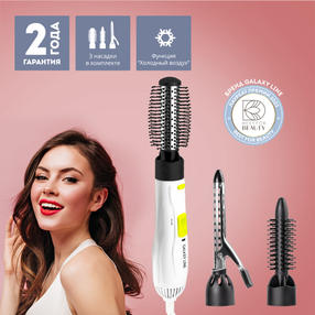 Расческа - фен GALAXY LINE GL4405 Большим преимуществом фенов-расчесок является отсутствие необходимости орудовать двумя предметами: феном и массажной щеткой. Это приспособление заменяет их одним устройством. С помощью фена-расчески вы сможете создать объем волосам или выпрямить их. Две насадки различного диаметра помогут вам справиться со сложными укладками и стайлингом, а насадка-плойка позволит экспериментировать с кудрями. Фен-щетка незаменим для обработки негустых прядей средней длины и короткой стрижки. 1 185,00 ₽ / шт