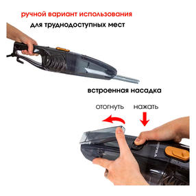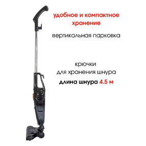 Ручной пылесос Supra VCS-5096 в пластиковом корпусе черного цвета работает в одном режиме, предназначен для сухой уборки. Питание прибор получает от электросети напряжением 220 В. Длина встроенного кабеля — 4,5. Конструкция снабжена крючками для сматывания шнура, оснащена съемным моющимся фильтром HEPA. В комплекте — две насадки. Пылесборник объемом 500 мл размещен внизу. Механический переключатель расположен на ручке. Трубка отсоединяется, что дает возможность использовать устройство для чистки труднодоступных мест. Габариты модели — 60х13,5х17 см, вес — 2 кг. 2 100,00 ₽ / шт