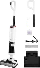 Vitek VT-FW11PRO — современный вертикальный беспроводной пылесос с функцией влажной уборки, совмещающий высокую мощность и удобство эксплуатации. Он рассчитан на быструю и эффективную уборку квартиры или дома, объединяя сухую и влажную очистку в одном устройстве. Особенности модели: • Функция влажной уборки — одновременно собирает пыль и протирает пол. • Самоочистка и сушка щётки — упрощает уход за устройством. • Голосовой помощник — информирует о режимах работы и необходимости обслуживания. • BLDC-мотор — долговечный и энергоэффективный двигатель. • Уборка вдоль углов и плинтусов — конструкция щётки позволяет захватывать грязь у стен. • Регулировка мощности — выбор оптимального режима для разных покрытий. Модель оснащена контейнером для пыли и отдельными резервуарами для чистой и грязной воды, что обеспечивает удобство эксплуатации и предотвращает смешивание отходов. В комплекте идут насадка для влажной уборки и роликовые щетки, что увеличивает функциональность устройства. Пылесос выполнен в стильном черно-белом корпусе, оборудован функцией самоочистки, фильтром тонкой очистки НЕРА, а также регулятором мощности на корпусе. Уровень шума составляет всего 70 дБ, а максимальное время работы от одного заряда достигает 35 минут. Vitek VT-FW11PRO отличается простотой обслуживания, возможностью быстрой зарядки аккумулятора и компактными размерами. Это универсальный помощник для уборки различных напольных покрытий, который подойдет для ежедневного использования и справится даже с трудновыводимыми загрязнениями. Характеристики: Модель: VT-FW11PRO Тип уборки: влажный, сбор жидкости, сухой Пылесборник: контейнер для пыли Объем пылесборника: 0.68 л Мощность: 180 Вт Мощность всасывания: 120 Вт Бак для чистой воды: 0.68 л Бак для использованной воды: 0.45 л Уровень шума: 70 дБ Турборежим: есть Мощность всасывания: 15000 Па Тип электропитания: от аккумулятора Длина сетевого шнура: 1.5 м Тип аккумулятора: Li-Ion Емкость аккумулятора: 2600 мAч Время уборки: 35 минут Время заряда: 240 минут Количество аккумуляторов: 1 шт Конструкция Регулировка мощности: на ручке Труба для всасывания: цельная Особенности: Уборка без слепых зон. Наклон на 180 (пылесос раскладывается горизонтально, возможна уборка под кроватью и диваном). Сушка ролика горячим воздухом. Голосовой помощник Материал трубы всасывания: металл Фильтры: HEPA Безопасность и управление: защита от перегрева Особенности пылесоса: LED-дисплей, легко очищаемый пылесборник, напольная подставка, прорезиненные колеса Индикация: включения, заполнения пылесборника, режима работы, степени зарядки Цвет: белый/черный Размеры (ШхВхД): 270 х 1100 х 220 мм Вес товара: 4.2 кг Насадки и принадлежности Турбощетка, насадка для влажной уборки ковров/полов 18 500,00 ₽ / шт