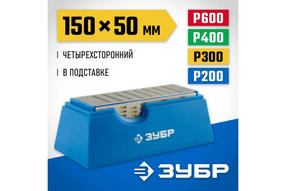 ЗУБР 150 х 50 мм, P200 / 300 / 400 / 600,на подставке,четырехсторонний алмазный брусок(33397-150-50)