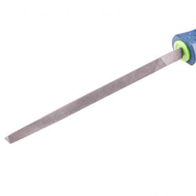 Трехгранный напильник Сибртех 16024, длина рабочей части 150 мм, с насечкой №2 и двухкомпонентной рукояткой, используется для ручной доводки металлических деталей, придания им нужной формы и размера. Оптимален для обработки треугольных отверстий, граней, пазов, внутренних углов. Насечка №2 с 13-25 зубьями на 1 см длины обеспечивает точную шлифовку после применения драчевого напильника. Инструмент будет полезен мастерам и любителям слесарного дела. Преимущества Долговечность — напильник изготовлен из высокоуглеродистой стали У13А, характеризующейся прочностью и устойчивостью к нагрузкам. Высокое качество опиловки — на полотно нанесена перекрестная насечка, в которой вспомогательные мелкие зубцы обеспечивают шлифовку материала. Комфорт во время работы — эргономичная двухкомпонентная рукоятка удобно лежит в руке и не выскальзывает из ладони. Удобное хранение — в тыльной части рукоятки имеется отверстие для подвешивания. 320,00 ₽ / шт