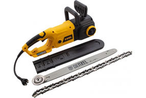 Электрическая цепная пила Denzel EDS-2200 95619 с продольным расположением двигателя мощностью 2,2 кВт, совместима с шиной длиной 45 см (шаг 3/8'', паз 1,3 мм) и цепью с 62 звеньями. Предназначена для распила различных пород древесины. Успешно справляется с валкой деревьев, подравниванием ветвей, заготовкой дров, спиливанием веток и т.д. Для работы пилы не требуется приготовление топливной смеси. Благодаря отсутствию вредных выхлопов и неприятного запаха инструмент можно использовать в помещении. Преимущества Надежность — медная обмотка обеспечивает стабильную работу двигателя даже при высоких нагрузках. Оптимальная балансировка — пила с продольным расположением двигателя удобна для выполнения ровных и чистых надпилов, а также для работы в ограниченном пространстве. Плавный пуск — включение происходит без рывка, двигатель и редуктор не испытывают резких нагрузок. Высокий ресурс пильной гарнитуры — система автоматической подачи масла обеспечивает своевременное смазывание шины и цепи в достаточном количестве. Безопасная эксплуатация — блокировка пуска предотвращает случайное включение пилы, инерционный тормоз цепи мгновенно останавливает ее вращение при резком отскоке инструмента в сторону пользователя. Удобная эксплуатация — зубчатый упор не соскальзывает с древесины, надежно фиксируя пилу и уменьшая нагрузку на руки пользователя, что особенно удобно для работы с крупными бревнами или деревьями. Ремонтопригодность — производитель предусмотрел быстрый доступ к щеткам двигателя. Быстрая подготовка к работе — система SDS позволяет регулировать натяжение цепи, а также устанавливать и снимать шину без использования инструментов. Удобный контроль количества масла — бачок имеет смотровое окошко с отметкой максимального уровня. Комфортная и безопасная работа — оптимизированная антивибрационная система снижает нагрузку на суставы и сосуды пользователя. Защита от перегрева — вентиляционные отверстия способствуют эффективному охлаждению двигателя. Продуманная конструкция — на задней рукоятке имеется держатель для кабеля удлинителя. Безопасная транспортировка и хранение — в комплект поставки входит чехол для шины. 9 319,00 ₽ / шт