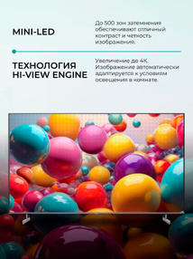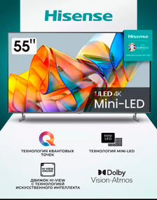 Конфигурация Mini-LED телевизора Hisense 55U6KQ позволяет улучшить работу светодиодов и добиться впечатляющей детализации на экране. Плотное группирование светодиодов существенно повышает точность работы задней подсветки и улучшает управление контрастом. Кроме того, эти светодиоды излучают свет в виде линии, а не рассеянного конуса, что также повышает точность. Возможность использования до 500 зон затемнения позволяет улучшить контраст и получить четкую и выразительную картинку. В телевизорах Quantum Dot используется одна из самых эффективных технологий для получения ярких и подлинных цветов. Применение квантовых точек позволяет максимально точно контролировать длину волны испускаемого света, получая тем самым миллиарды новых оттенков с впечатляющим уровнем яркости. В результате зритель видит огромную цветовую палитру, находящуюся на грани возможного. Технология Hi-View Engine от Hisense — это и «мозг», и «мускулы» вашего телевизора. Мощная нейросеть постоянно оптимизирует изображение путем анализа на уровне кадров в режиме реального времени, чтобы добиться наилучшего качества видео и звука. Кроме того, она заботится о сложных функциях, таких, как увеличение масштаба до 4K и улучшение цвета, так что даже видео низкого качества выглядит лучше, чем когда-либо. Регулировать настройки телевизора вручную утомительно и сложно. Расширенный адаптивный датчик Hisense отслеживает освещенность в помещении и автоматически регулирует уровень яркости, чтобы улучшить изображение. В телевизорах Hisense реализован единственный разумный подход к HDR — поддержка всех основных форматов, включая Dolby Vision, HDR10, HDR10+ и HLG. С Apple AirPlay вы сможете транслировать фильмы, музыку, игры и фотографии на телевизор прямо с iPhone, iPad или Mac. Услышьте то, что столько времени упускали. Погрузитесь глубже в любимые фильмы и программы с технологией объемного звучания Dolby Atmos. 51 000,00 ₽ / шт