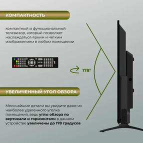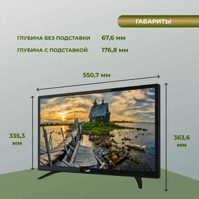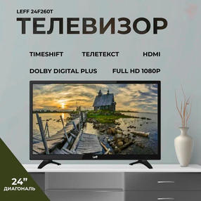 LEFF 24F260T — компактный телевизор с LED-панелью и светодиодной подсветкой. Он воспроизводит качественное и детализированное изображение с высокой контрастностью. USB-выход позволяет подключать к устройству внешний накопитель для просмотра видео, фото и другой мультимедии. Две подставки обеспечивают устойчивость телевизора на ровной, гладкой поверхности. Преимущества LEFF 24F260T: Стереодинамики по 3 Вт. Телетекст. Родительский контроль. Таймер сна. Высокий класс энергоэффективности. Время отклика 8 мс. Экран с широкими углами обзора Телевизор LEFF 24F260T получил экран диагональю 24 дюйма с разрешением 1920x1080. LED-панель обеспечивает более широкий спектр ярких цветов и высокий динамический контраст, благодаря чему видео четко видно под разными углами и при очень ярком освещении. Частота обновления 60 Гц делает изображение плавным и без разрывов даже при воспроизведении сцен с быстро движущимися объектами. Функция родительского контроля Функция родительского контроля в телевизоре позволяет родителям ограничивать доступ своих детей к нежелательному контенту и управлять тем, что они могут смотреть. Благодаря этой программе взрослый пользователь может блокировать каналы, устанавливать возрастной рейтинг для автоматической блокировки потенциально опасного контента. 10 890,00 ₽ / шт