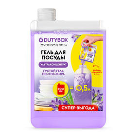 Эко-гель для посуды концентрат DutyBox KITCHEN "Лаванда и рoзмарин", 200 мл Средство для мытья посуды с ароматом Лаванды и розмарина - ультраконцентрат, после разведения одной капсулы объемом 200мл вы получаете 500мл готового геля для мытья посуды. Готовое к применению эффективное моющее средство, которое удаляет жир и остатки пищи с поверхности посуды, как в горячей, так и в холодной воде. Гелевая формула средства глубоко проникает даже в застывший жир, расщепляя его изнутри и нейтрализуя стойкие неприятные запахи. Чистящее средство безопасно для ухода за детской посудой, 0+, для тарелок, бутылочек, сосок и игрушек, для мытья овощей и фруктов. Жидкость для мытья посуды имеет приятный аромат Лаванды и розмарина. Безопасен для септиков.Способ применения: открыть крышку, разбавить 200 мл концентрата на 300 мл воды в любом флаконе объёмом 0,5 л, который есть у вас дома, перемешать. Готовое гелевое средство выдавите на губку, распеньте, очистите загрязнения. 98,28 ₽ / шт
