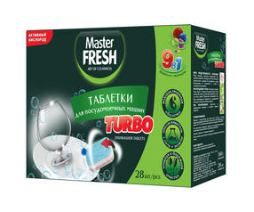 Высокоэффективный состав таблеток для посудомоечных машин Master FRESH "TURBO" справляется с самыми сильными и сложными загрязнениями. Легко устраняет любые пятна, в том числе от чая, кофе и губной помады. Ухаживает за изделиями из стекла, нержавеющей стали и серебра, не царапает посуду. Обладает эффектом отмачивания. Придает посуде блеск. Защищает посудомоечную машину от накипи и коррозии. Антибактериальный эффект. Упаковка – особо плотный картон оптимально сохраняет все свойства продукта. 15,00 ₽ / шт