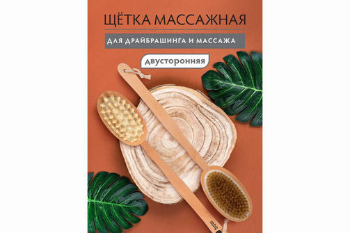 Щетка деревянная, двусторонняя с импульсным массажером, 42 см для бани и сауны "Банные штучки"