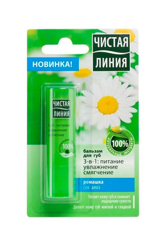 Бальзам Чистая Линия 3в1 Питание и увлажнение обеспечивает комплексный уход за нежной кожей губ. В состав бальзама входят экстракт ромашки, который успокаивает и восстанавливает кожу губ, стимулирует ее регенерацию, а также сок алоэ вера, который увлажняет и питает. После использования бальзама Чистая Линия 3в1 Питание и увлажнение губы выглядят ухоженными и гладкими. 124,41 ₽ / шт