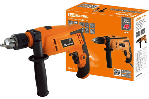 Дрель ДУ-710, удар., мощ. 710 Вт,13мм, 0-3000 об/мин, 0-48000 уд/мин, шнур 3м "Рубин" TDM