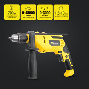 Kolner KID 700V (10шт) Дрель ударная 700 Вт, 0- 3000 об/мин, 0- 48000 уд/мин, ключевой парон 1,5-13