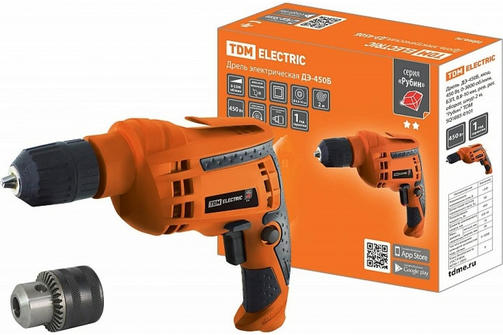 Дрель ДЭ-450Б, мощ. 450 Вт, 0-3000 об/мин, БЗП 0,8-10 мм рев.рег.оборот. шнур 2м TDM