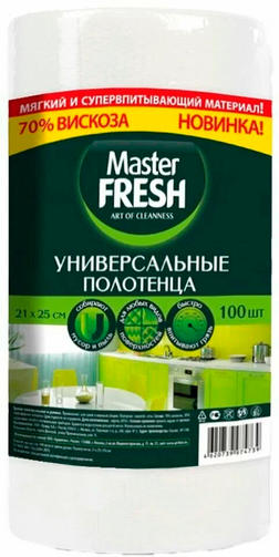 Универсальные полотенца Master FRESH отлично впитывают влагу, жир, масла, за счет повышенного содержания вискозы - 70%. Чистят и полируют, не оставляя ворсинок, легко отрываются благодаря качественной перфорации. Высокопрочные, могут использоваться многократно, обладают антистатическими свойствами. Материал спанлейс «соты» прочный на разрыв, имеет повышенную впитываемость в сравнении с обычным гладким материалом спанлейс, а так же обладает приятными тактильными свойствами что немало важно при уходе за детьми. Полотенца в рулоне Master FRESH - это отличные помощники для любой хозяйки буквально везде: для дома, дачи, автомобиля, в уходе за детьми, для личной гигиены. 273,40 ₽ / шт