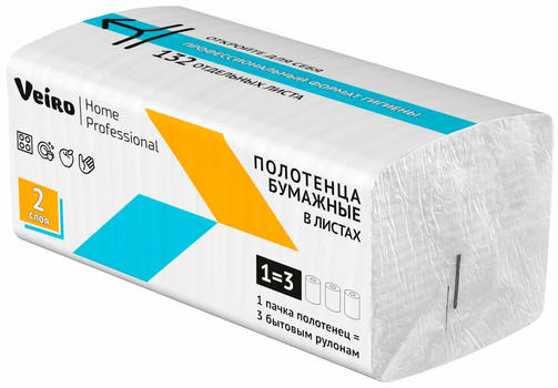 Veiro Home Professional — новые профессиональные решения: Полотенца бумажные для рук V-сложение. Veiro Professional Home для дома и бизнеса. Преимущества : • 1 пачка заменяет 3 бытовых рулона полотенец, • отличительный дизайн, удобная упаковка, • компактные размеры и выгодная стоимость, • полное удаление влаги и загрязнений с любых поверхностей, • доказанные бактериостатические свойства, • легко и безопасно утилизировать. 150,00 ₽ / шт