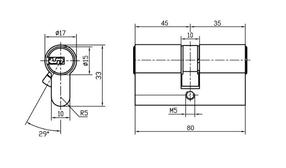 72034_Цилиндр DL Standard 35x45мм PN (матовый никель) 3 ключа