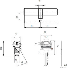Цилиндровый механизм APECS SC-80-Z-G 80-Z 02732 используется для комплектации врезных замков. Для защиты от силовых методов вскрытия в корпусе и сердечнике есть стальные штифты, стальные опорные пины дают надёжную защиту от высверливания и вытягивания, отклонение кулачка на 30 градусов защищает от выбивания. Несколько основных пинов выполнены с проточкой для минимальной вероятности вскрытия манипуляционными методами (проще: отмычками). Высокая точность изготовления и жёсткий контроль производства позволили получить высокую работоспособность. С обеих сторон цилиндр закрывается профильным ключом. Упаковка - коробка; Тип механизма секретности - цилиндровый; Тип цилиндрового механизма - евроцилиндр; Типоразмер цилиндра, расположение вертушки (если она есть) - 40/40; Тип ключа - английский. 1 500,00 ₽ / шт