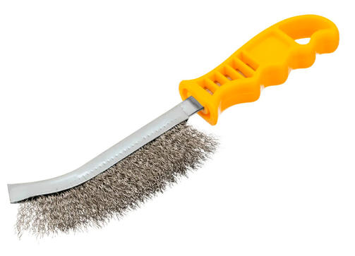 Металлическая зачистная щетка Denzel 748287 с пластмассовой рукояткой и щетиной из нержавеющей проволоки, используется для очищения металлических, деревянных и других поверхностей от ржавчины, загрязнений, остатков лакокрасочных покрытий. Щетина из нержавейки с высокой абразивной способностью обеспечивает эффективность щетки. Благодаря изогнутому корпусу щетка удобна для обработки поверхностей со сложным рельефом. Инструмент пригодится во время строительства, кузовного ремонта, а также на производстве и в быту. Преимущества Высокое качество выполняемых работ — частицы щетины из нержавеющей стали, остающиеся в порах обрабатываемого материала, не вызывают коррозии его поверхности. Износостойкость — благодаря увеличенной плотности пучков щетина устойчива к истиранию, надежно закрепленная проволока не выпадает во время работы. Комфортное использование — пластиковая рукоятка с выемками для пальцев удобно ложится в руку. 250,00 ₽ / шт