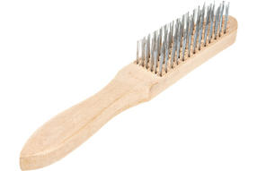Металлическая 6-рядная щетка Sparta 748265 с деревянной ручкой — инструмент для ручного удаления ржавчины, грязи, остатков краски с металлических, деревянных и других поверхностей. 6-рядная щетина обеспечивает качественную обработку. Щеткой пользуются строители, ремонтники, специалисты по кузовному ремонту, пригодится она и в быту. Преимущества Щетина из высококачественной стальной проволоки устойчива к износу, поэтому щетка выдерживает интенсивное применение. На проволоку нанесено цинковое покрытие для защиты от коррозии, что увеличивает срок службы инструмента. Прочная деревянная рукоятка обеспечивает долговечность щетки. 167,00 ₽ / шт