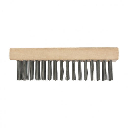 Плоская зачистная 5-рядная щетка Сибртех 74810 с деревянным корпусом и щетиной из закаленной прямой проволоки — ручной инструмент, позволяющий очистить поверхность от заусенцев, загрязнений, ржавчины, остатков штукатурки и лакокрасочного слоя. Расположенный в 5 рядов ворс обеспечивает эффективное воздействие на обрабатываемую поверхность. Подходит для обработки металла, дерева, пластика и сварных швов. Используется в строительстве, авторемонтном деле, будет полезна во время ремонта и в быту. Преимущества: Ворс изготовлен из закаленной стальной проволоки, поэтому прочен и износостоек. Щетина надежно зафиксирована в основании и не выпадает во время работы. В каждом пучке 20 щетинок, что обеспечивает устойчивость щетки к повышенным нагрузкам. Проволока имеет устойчивость к коррозии благодаря масляной пленке. Долговечный деревянный корпус увеличивает надежность кордщетки. 155,00 ₽ / шт