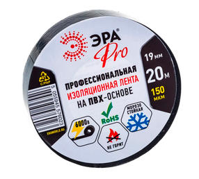 Изолента ПВХ 19ммх20м PRO150BLACK 150мкр проф. черн. ЭРА Б0027917