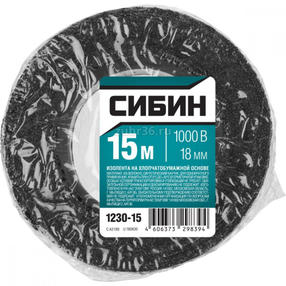 СИБИН 18 мм х 15 м, 1 000 В, черная, изолента х/б (1230-15)