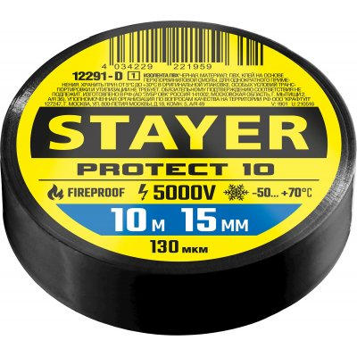STAYER PROTECT-10, 15 мм х 10 м, 5 000 В, черная, изолента ПВХ, Professional (12292-D)