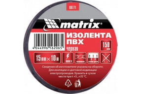 Изолента ПВХ, 15 мм х 10 м, черная, 150 мкм Matrix 88771