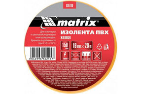 Изолента ПВХ, 19 мм х 20 м, желтая, 150 мкм Matrix 88780