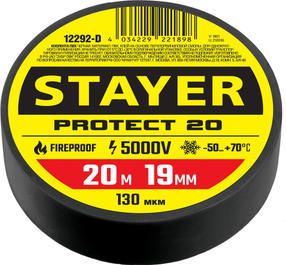 STAYER PROTECT-20, 19 мм х 20 м, 5 000 В, черная, изолента ПВХ, Professional (12292-D)