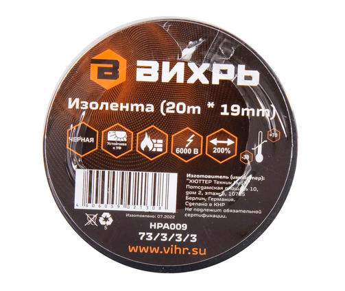 Изоляционная лента ВИХРЬ благодаря своим свойствам широко применяется в различных отраслях и является популярным выбором для многих задач. В строительстве изолента применяется для герметизации стыков и соединений, защиты от влаги и уплотнения поверхностей. Ее можно использовать для скрепления утеплителя или для временного крепления материалов во время ремонта. За счет ПВХ основы она очень прочная и может растягиваться до 200% на разрыв. Широкий температурный диапазон применения от -30°С до +70°С позволяет использовать ее на улице. Изолента устойчива к ультрафиолетовым лучам и не горит. Способна выдержать напряжение до 6000 В. 150,00 ₽ / шт