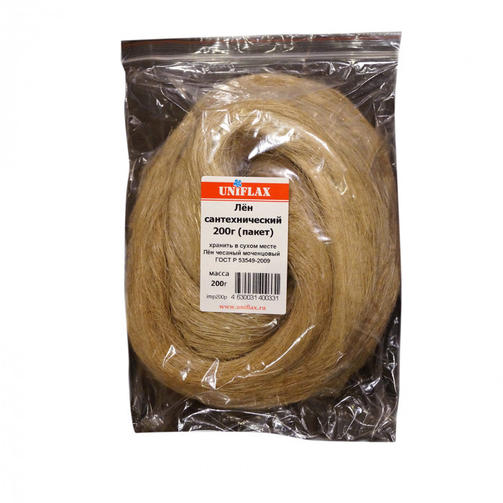 Лён «UNIFLAX» представляет собой качественный, натуральный продукт, не имеющий посторонних запахов. Лён идеально подходит для уплотнения резьбовых соединений в системах водо- паро- и газоснабжения как с применением герметиков, так и без них. Натуральный однородный длинноволокнистый чёсаный лён. Сантехнический лен используется также для уплотнения раструбных соединений чугунных и керамических труб, набивки сальниковых муфт и т.д. Натуральный лен Uniflax прошел тесты на разрыв и гибкость и соответствует государственным стандартам Р 53549-2009 «Лен чесаный. Масса льна в упаковке – 200 г. 650,00 ₽ / шт