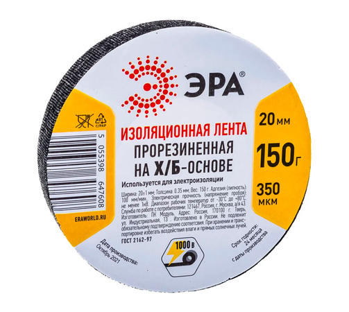 Изолента х/б 20мм (150г) прорезиненная черн. ЭРА Б0002453