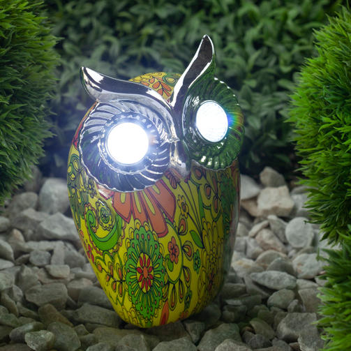 Садово-парковый светильник ERAFYS01-01 "Филин" станет чудесным украшением на вашей загородной территории. Небольшие габариты позволят Вам расположить светильник в палисаднике, украсить прудик, необычно подсветить цветы или вход в дом. Фигурка из полистоуна высотой 16 см с легкостью устанавливается в землю. LED светильник функционирует на солнечной батарее. Такой вид получения энергии является самым экологичным, энергоемким и бесшумным. Питание происходит во включенном режиме, в светлое время суток. С наступлением темноты филин "просыпается". Его большие глаза начинают сиять ярким белым светом, создавая таинственную атмосферу на участке. Пестрый желтый рисунок в виде цветов на корпусе будет прекрасно гармонировать с окружающей филина растительностью. Уличный светильник рассчитан на 8 часов непрерывной работы. Высокая степень пыле и влагозащиты позволяет оставлять устройство на месте даже в дождливую погоду. Обращаем Ваше внимание, что перед использованием фигурки её необходимо включить и зарядить. Светильник заряжается в течение всего светового дня. Декоративный светильник "Филин" на солнечной батарее от компании ЭРА лучший вариант для украшения Вашей территории! 1 299,00 ₽ / шт