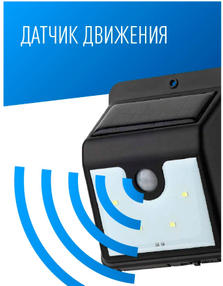 Уличный светильник на солнечной батарее с датчиком движения. Аккумулятор 3.7В 800мА 18650 литиевый. Зона действия датчика - 3м. 4 SMD светодиода. Саморезы для крепления на стену в комплекте 800,00 ₽ / шт