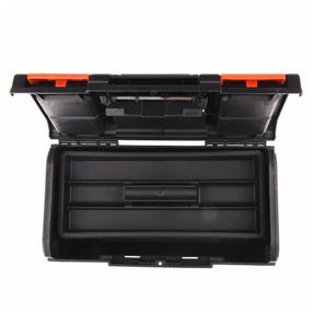 Ящик для инструментов,усиленный 16" STELS 90761 используется для хранения и транспортировки инструментов, крепежа и прочих расходных материалов. Благодаря усиленной конструкции данная модель выдерживает вес при переноске 20 кг. Это позволяет использовать ящик для транспортировки электроинструмента. Максимальная распределенная нагрузка на крышку 120 кг. Технические характеристики кейса STELS 90761 Габариты без упаковки 390х220х162 мм Материал полипропилен PP Высота 162 мм Ширина 220 мм Длина 390 мм Класс товара Бытовой Назначение для электроинструмента Цвет черный/оранжевый Форм-фактор ящик (кейс) Объем 13.1 л На колесах нет Ударопрочный корпус нет Преимущества кейса STELS 90761 STELS 90761 изготовлен из прочного пластика и оснащен удобной ручкой, которая обеспечивает надежный перенос. Конструкция замка разработана специально для легкого открытия одной рукой, но при этом исключено случайное открывание ящика. За счёт опор в основании, ящик устойчивый и имеет максимальный объем хранения. Дополнительный съемный лоток и внешние отделения на крышке позволяют хранить необходимые инструменты и мелочи. Усиленная конструкция допускает максимальный вес при переноске 20 кг. 1 990,00 ₽ / шт