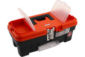Ящик для инструмента с металлическими замками STELS 16", 410x210x175 мм 90746 — альтернатива коробке для инструментов. В нем можно расположить ручной инструмент, крепежи, хозяйственные мелочи, а также рыболовные снасти. В крышке имеются встроенные органайзеры, на дне - выкидной лоток с отсеками для мелких деталей, что увеличивает функциональность ящика. Его удобно брать в поездки, также ящик пригодится дома, на даче или в гараже. 1 914,00 ₽ / шт