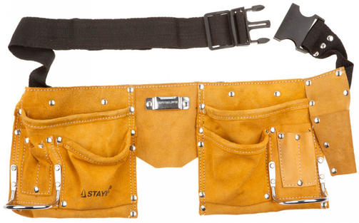 STAYER кожаный, 2 скобы, пояс для инструментов с 10 карманами (38510)