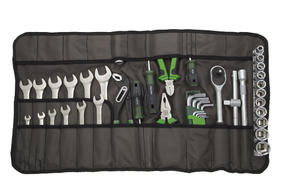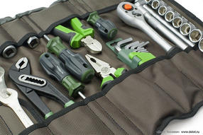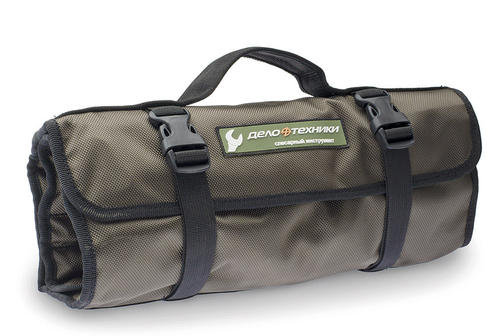 Сделано в России. В 2016 году команда «Дело Техники» разработала компактный, универсальный набор инструмента, выполненный в виде сумки-скрутки. Это решение дало старт целой серии различных наборов, укомплектованных в удобные планшеты. Сумка-скрутка с инструментом подходит для ремонта автомобиля, мотоцикла и другой техники в гараже, мастерской, поездке или автопутешествии. Материал сумки: масло-водоотталкивающая ткань Oxford. Габариты: Раскрытая - 370×670 мм Сложенная - длина - 370 мм, ∅130 мм Комплектация набора инструмента: Тип инструмента Размер, особенности Пассатижи 180 мм Бокорезы 160 мм Клещи переставные 250 мм Ключи комбинированные 6, 8, 10, 12, 13, 14, 15, 16, 17, 18, 19, 22 мм Набор ключей шестигранных 1,5; 2; 2,5; 3; 4; 5; 6; 7; 8; 10 мм 561 101 Головки шестигранные 1/2˝ 8, 10, 12, 13, 14, 15, 16, 17, 19, 22, 24 мм Головка свечная 1/2˝ с резиновой вставкой 16 мм 620 601 Вороток Т-образный 1/2˝ 250 мм Трещотка 1/2˝ 250 мм (45 зубцов) Удлинитель 1/2˝ 250 мм Кардан 1/2˝ 80 мм Отвёртки: Шлиц SL5 × 100 мм Крест PH2 × 38 мм, PH2 × 100 мм 9 700,00 ₽ / шт