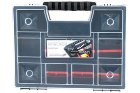 Органайзер Rusconnect NOR08 Organizer 8 35×150×190 мм 613549 представляет собой удобное хранилище для различных мелочей. Прочный пластиковый корпус и удобное разделение пространства позволяет хранить внутри большое количество саморезов, шайб и прочих мелочей. Технические характеристики органайзера Rusconnect 613549 Назначение для мелочей/метизов Длина 190 мм Ширина 150 мм Высота 35 мм Габариты без упаковки 35х150х190 мм Форм-фактор органайзер Материал пластик Количество отделений 5 Ударопрочный корпус нет Цвет черный/прозрачный Наличие ручки есть Материал замка пластик 505,00 ₽ / шт