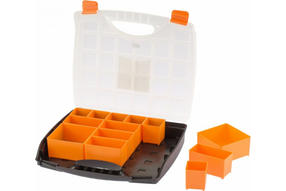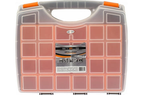 Органайзер с контейнерами Stels 90725 размером 425 х 330 х 60 мм, из пластика, пригодится в хозяйстве и мастерской для хранения крепежных элементов, принадлежностей для рукоделия, снастей и т.д. Он обеспечивает быстрый доступ к предметам, не допуская их перемешивания и утери. Технические характеристики органайзера STELS 90725 Назначение для мелочей/метизов Длина 425 мм Ширина 330 мм Высота 60 мм Габариты без упаковки 425х330х60 мм Форм-фактор органайзер Материал пластик Количество отделений 20 Ударопрочный корпус нет Цвет черный/прозрачный Класс товара Бытовой Наличие ручки есть Материал замка пластик 940,00 ₽ / шт