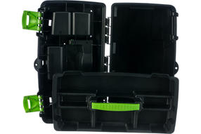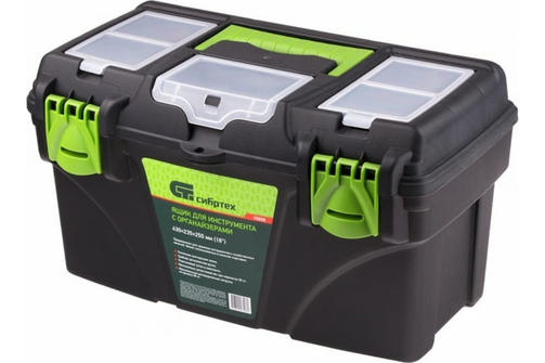 Ящик Сибртех 90808, 18 дюймов, с органайзерами, используется для хранения и транспортировки инструментов, оснастки, крепежей, хозяйственных мелочей и других предметов. Крышка и замок усилены трехрядными петлями, поэтому он выдерживает вес содержимого до 50 кг. Ящик можно брать в поездку, также он пригодится дома, на даче или в гараже. 1 690,00 ₽ / шт