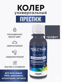 Универсальный колер для краски Престиж предназначен для колеровки эмалей, красок, лаков и шпатлёвок всех типов: латексных и акриловых на водной основе, алкидных на органических растворителях, масляных на олифах и других лакокрасочных материалов, а также цементных составов, штукатурок, затирок для швов, огнебизащитных составов. Колер паста предназначена для наружных и внутренних работ. Универсальный колер полностью соответствуют европейским нормам качества и безопасности. Окрашенная поверхность однородная, тон глубокий, не видны следы от валика. Универсальность применения, светостойкость, яркость, насыщенность оттенков, стабильность при длительном хранении. Большой выбор цветов колера. Состав: Пропиленгликоль, пигменты, вода, функциональные добавки. Запах отсутствует. Срок годности 60 месяцев. Условия транспортировки Морозостойкий (до -40 С). Способ применения: 1. пасту перемешать, встряхнуть; 2. ввести пасту в небольшой объем колеруемого материала; 3. перемешать; 4. смесь перемешать со всем объемом колеруемого материала; Вводить в краски не более 10%; *не использовать как самостоятельное покрытие*перед применением рекомендовано предварительное тестирование 125,00 ₽ / шт