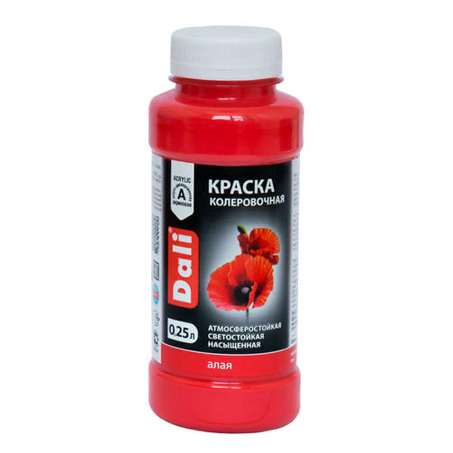 Краска колеровочная Dali 0.25 л предназначена для колеровки интерьерных, фасадных красок, декоративных штукатурок на водной основе, а также для художественных и оформительских работ внутри и снаружи помещений по пористым белым основаниям. 250,00 ₽ / шт